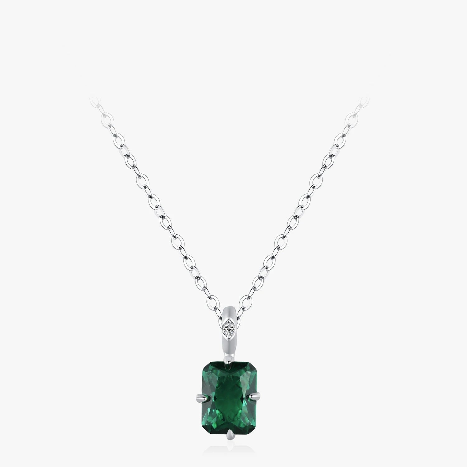 Fabriqué en argent 925 certifié, il présente un pendentif rectangulaire orné d’un zircon vert éclatant, parfait pour les fêtes, mariages et occasions spéciales.
